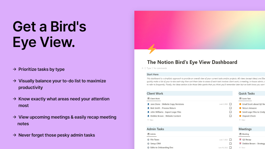 Full Access to The Notion Bird's Eye View Dashboard